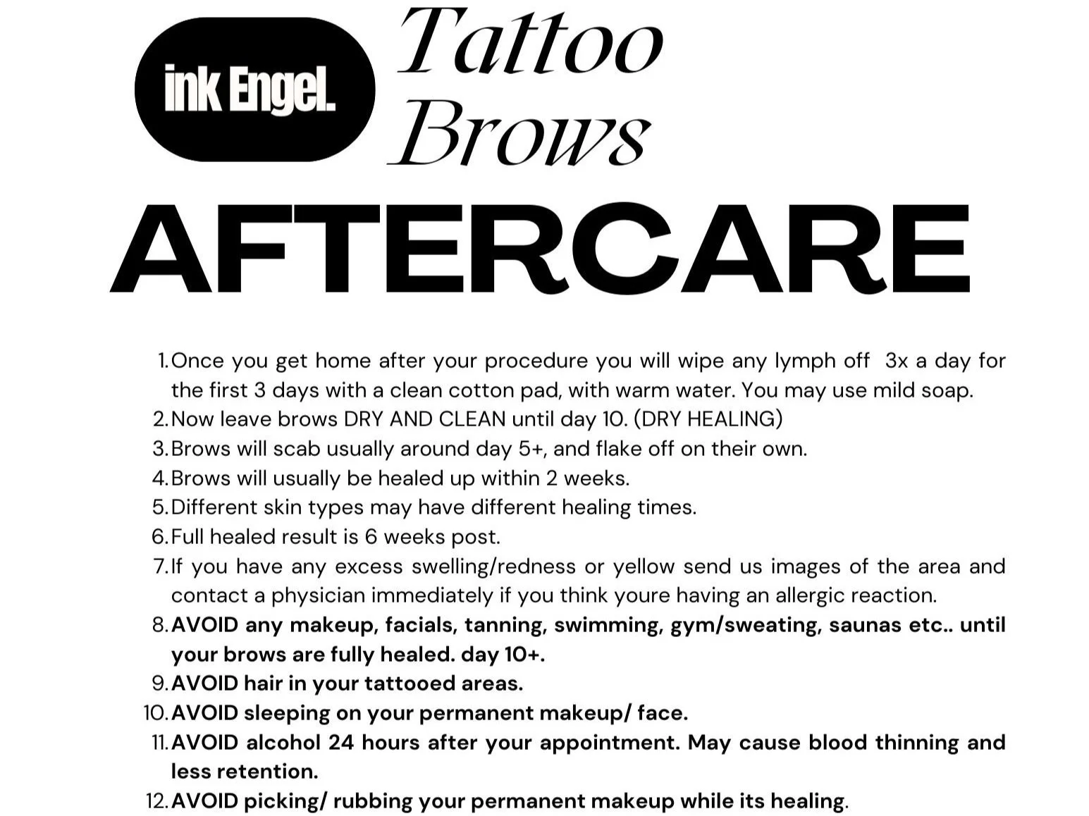 Do not tint or wax your brows for a week prior to eyebrow tattooing due to compromised skin.